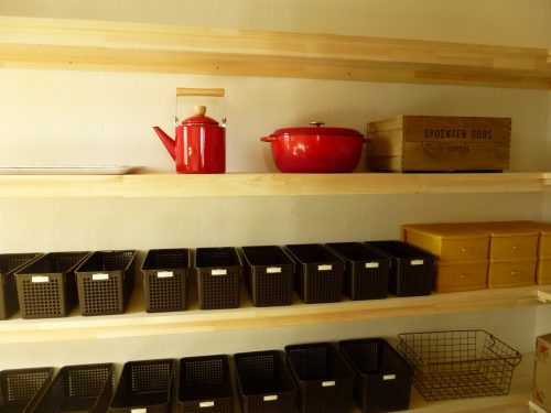 食品庫の棚板寸法はお施主様と現場で打合せをしながら施工しました。